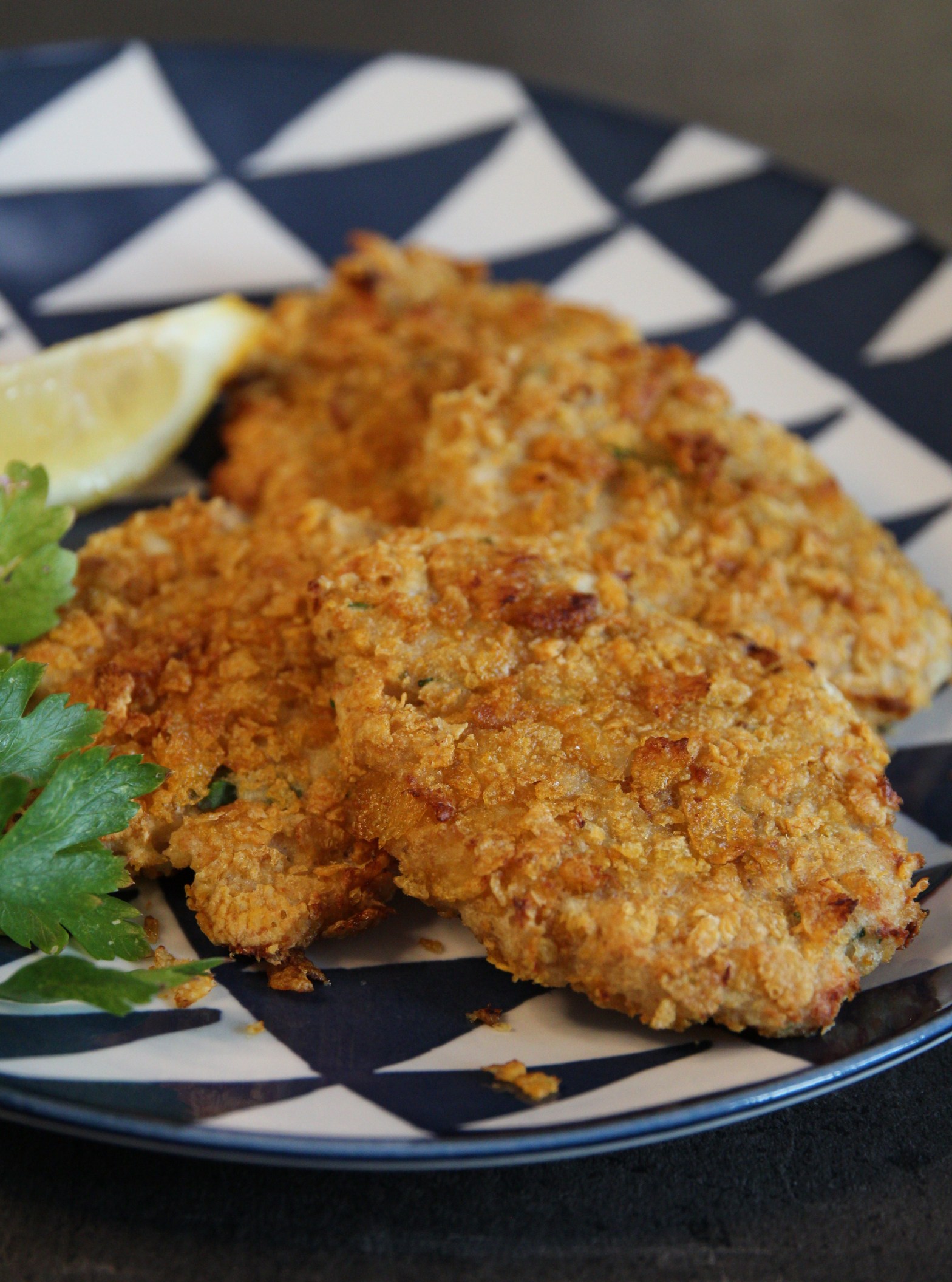 Nel frattempo rompi i fiocchi di corn flakes e tienili per l’impanatura, infatti forma con le mani delle piccole cotolette da passare poi nei fiocchi di mais e riporre in una teglia da forno.